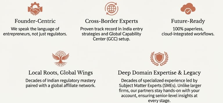 End to end support for setting up & structuring businesses in India and internationally with the right legal, regulatory and governance framework